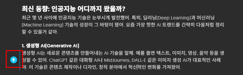 3. 번개 아이콘 클릭 → 시각 자료 생성