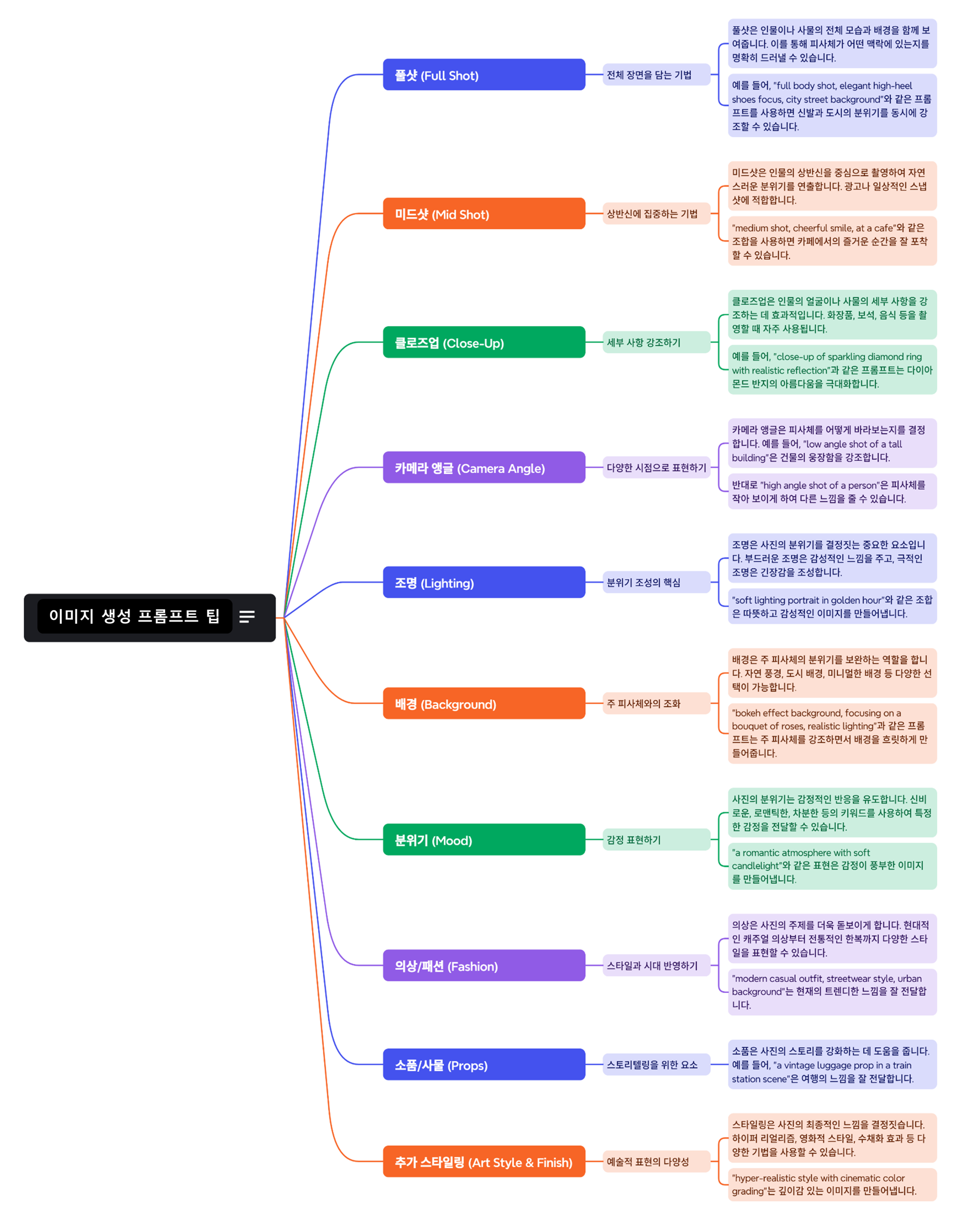 - 팁: 배경까지 함께 보여주면서 인물이나 사물이 어떤 맥락에 있는지 확실히 드러낼 수 있어. 예를 들어 “full body shot, elegant high-heel shoes focus, city street background” 식으로 쓰면 신발도 강조되면서 주변 분위기도 자연스럽게 들어가겠지.