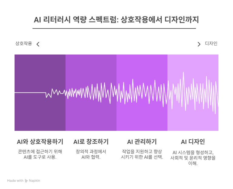 - 기초(Foundational): AI 리터러시 능력을 입증하는 데 필요한 핵심 역량 세트를 정의합니다.